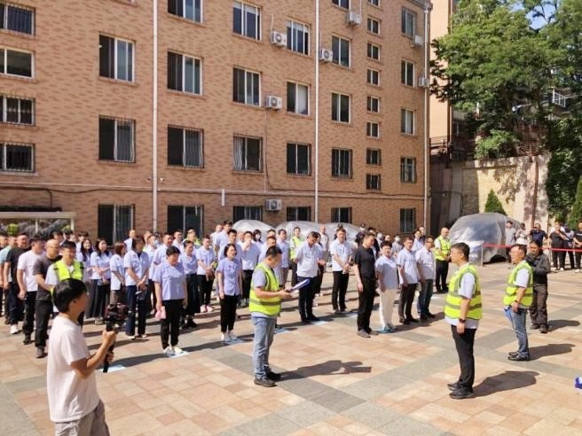 为进一步筑牢全体员工的消防安全思想防线,切实强化全员消防安全意识与岗位责任担当,集团精心策划并组织全体员工开展了一场贴近实战、覆盖全员的消防应急疏散演练。演练模拟真实火情场景,从火情预警响起的那一刻起,各部门员工迅速按照预定疏散路线有序撤离。现场紧张有序,员工们用湿毛巾捂住口鼻,低姿前行,快速向安全区域集结。同时,相关人员迅速展开现场警戒,防止无关人员进入危险区域。